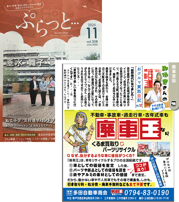 垂水・須磨・西区・明石の地域情報誌「ぷらっと」7月号で多田自動車が紹介!廃車買取...